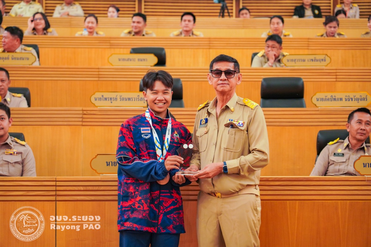 วันที่ 19 กุมภาพันธ์ 2569 เวลา 10.00 น. ณ ห้องประชุมสภาองค์การบริหารส่วนจังหวัดระยอง ชั้น 11 นายปิยะ ปิตุเตชะ นายกองค์การบริหารส่วนจังหวัดระยอง เป็นประธานในพิธีมอบโล่ประกาศเกียรติคุณแก่นักกีฬาที่สร้างชื่อเสียงให้กับจังหวัด จากการเป็นตัวแทนทีมชาติไทยเข้าร่วมการแข่งขัน กีฬาซีเกมส์ ครั้งที่ 33 ระหว่างวันที่ 9-20 ธันวาคม 2568 ณ ประเทศไทย จำนวน 6 ราย เพื่อแสดงการยกย่องเชิดชูเกียรตินักกีฬาที่ทำคุณประโยชน์แก่จังหวัดระยอง และเป็นแบบอย่างที่ดีแก่สังคมต่อไป