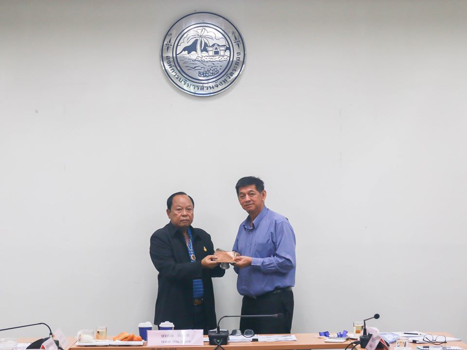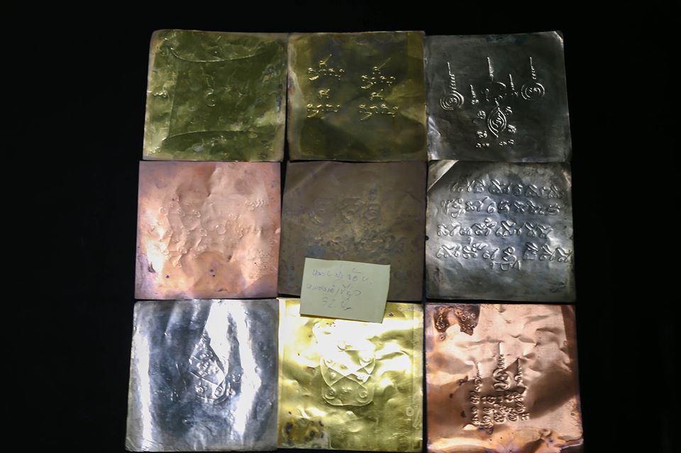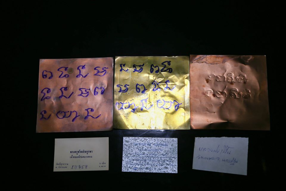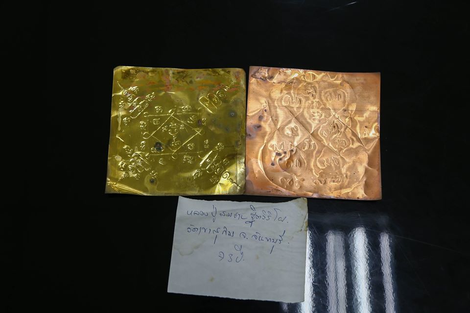 นายปิยะ ปิตุเตชะ นายกองค์การบริหารส่วนจังหวัดระยอง รับมอบแผ่นทอง นาค เงิน จารมือของ 9 พระเกจิอาจารย์ดังทั่วประเทศ