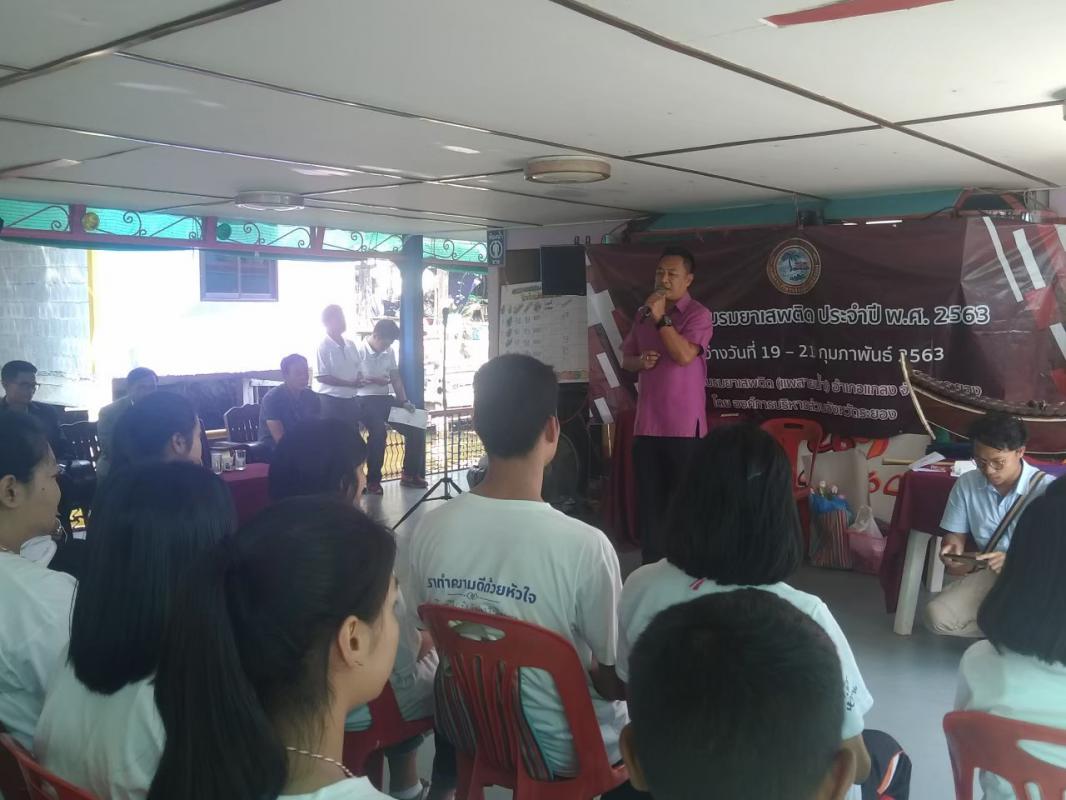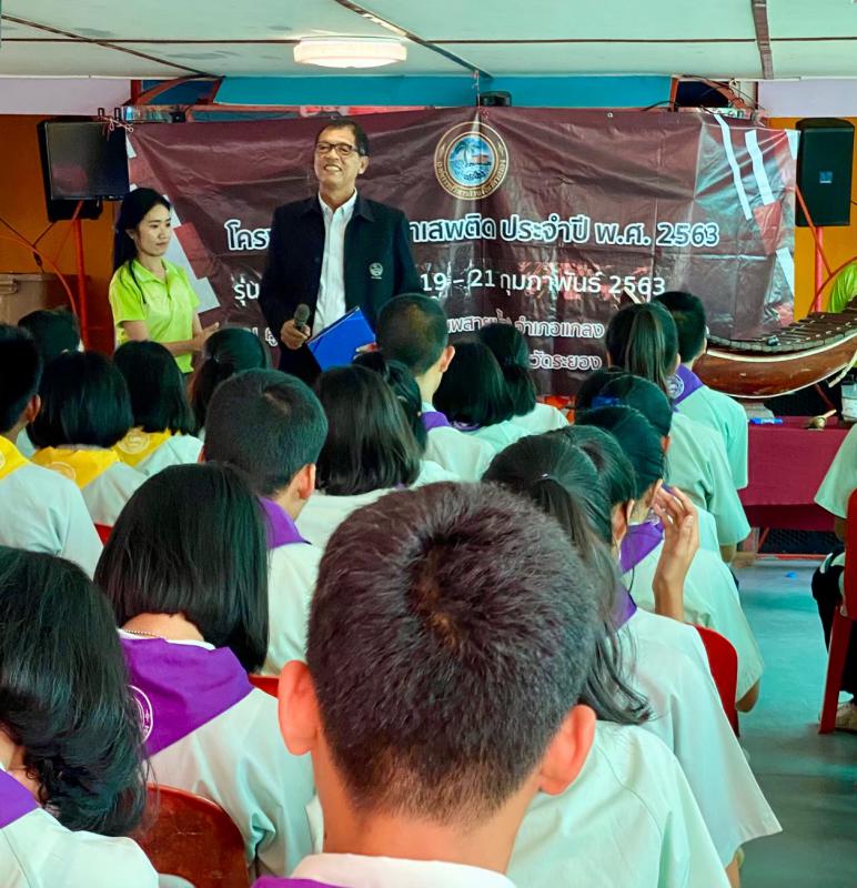 “โครงการอบรมยาเสพติด ประจำปี 2563 รุ่นที่ 1 ระหว่างวันที่ 28 – 30 มกราคม 2563 รุ่นที่ 2 ระหว่างวันที่ 4 – 6 กุมภาพันธ์ 2563 รุ่นที่ 3 ระหว่างวันที่ 11 – 13 กุมภาพันธ์ 2563 รุ่นที่ 4 ระหว่างวันที่ 19 – 21 กุมภาพันธ์ 2563 รุ่นที่ 5 ระหว่างวันที่ 25 – 27 กุมภาพันธ์ 2563 รุ่นที่ 6 ระหว่างวันที่ 3 – 5 มีนาคม 2563 รุ่นที่ 7 ระหว่างวันที่ 10 – 12 มีนาคม 2563 รุ่นที่ 8 ระหว่างวนที่ 17 – 19 มีนาคม 2563 ณ ศูนย์ฝึกอบรม ยาเสพติด (แพสายน้ำ) อำเภอแกลง จังหวัดระยอง โดยมีวัตถุประสงค์เพื่อให้นักเรียน เยาวชนและประชาชน ซึ่งเป็นอนาคตของชาติมีความรู้และตระหนักถึงพิษภัยและโทษของยาเสพติด รวมทั้งให้ความสำคัญ ในการป้องกันและแก้ไขปัญหายาเสพติด”