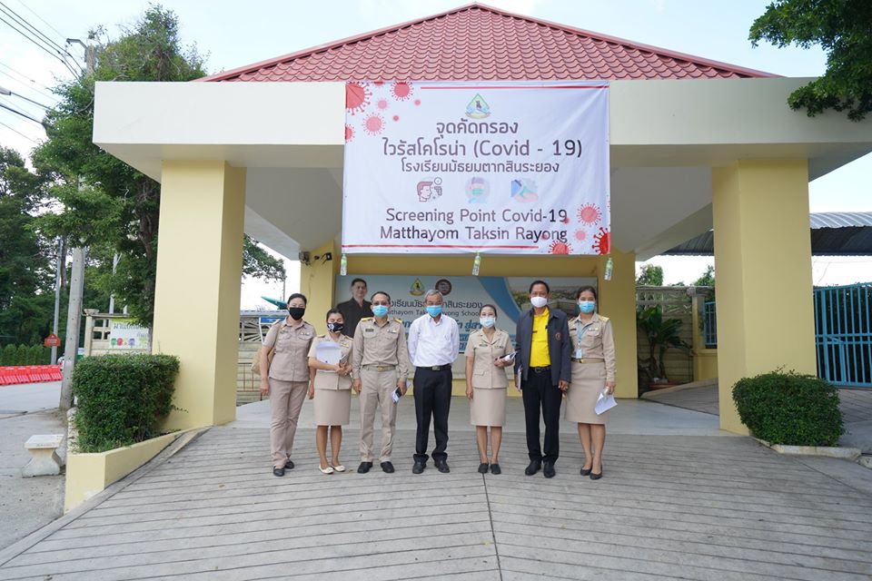 วันที่ 22 มิถุนายน 2563 นายสุรินทร์ แสงทอง รองปลัดองค์การบริหารส่วนจังหวัดระยอง (1) รักษาราชการแทน ปลัดอบจ.ระยอง พร้อมด้วย นางสาวราตรี คุ้มญาติ ผู้อำนวยการ กองการศึกษา ศาสนาและวัฒนธรรม นางลัดดาวัลย์ ชาไธสง ผู้อำนวยการกองแผนและงบประมาณ นางขนิษฐา สัสดีพันธ์ ผู้อำนวยการกองช่าง และคณะกรรมการสถานศึกษา ลงพื้นที่ตรวจความพร้อมในการเปิดภาคเรียนของสถานศึกษาในสังกัดอบจ.ระยอง ปีการศึกษา 2563 ซึ่งจากการเดินสำรวจสถานศึกษามีการดำเนินงานตามมาตรการสาธารณสุข (สธ.) อย่างมีประสิทธิภาพ เช่นการกำหนดตำแหน่งจุดเว้นระยะห่าง มีป้ายประชาสัมพันธ์ถึงข้อพึงระมัดระวังและสิ่งที่จะต้องปฏิบัติเพื่อป้องกันภัยจากเชื้อไวรัสโคโรนา 2019 หรือ โควิด-19 โดยมีจุดคัดกรองนักเรียนบริเวณหน้าโรงเรียน มีการติดตั้งเจลแอลกอฮอล์ และสบู่เหลวที่อ่างล้างมือทุกจุด ทั่วบริเวณโรงเรียน