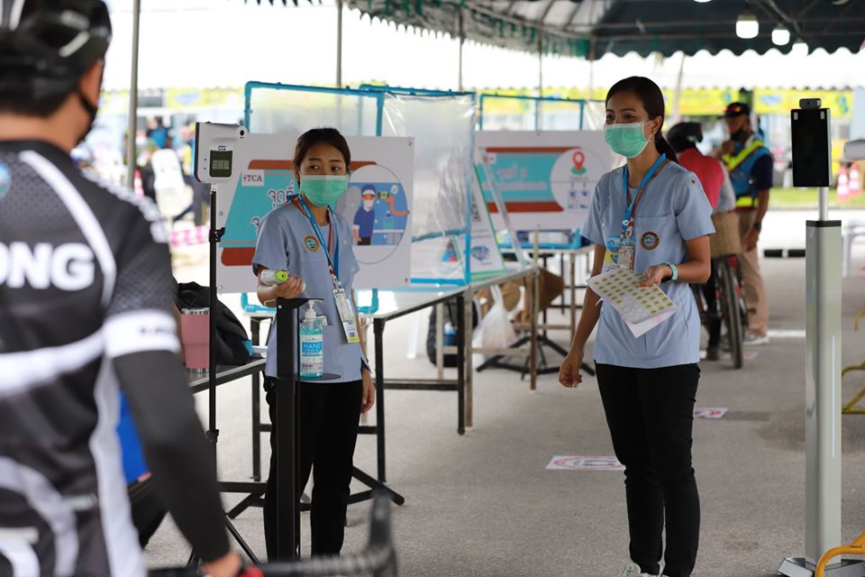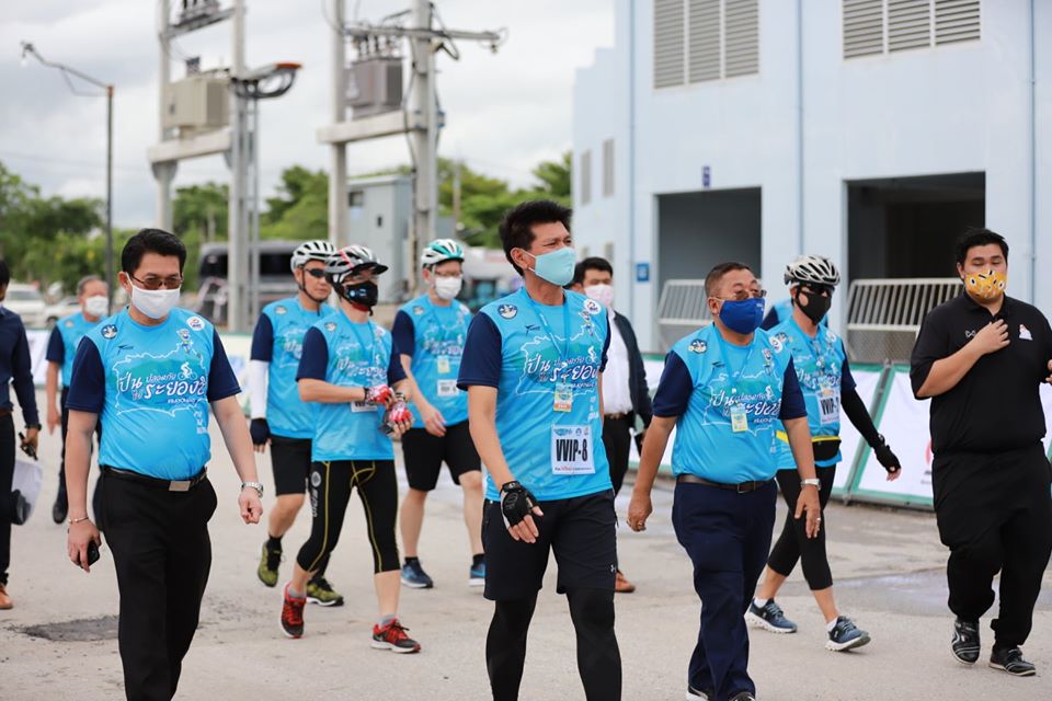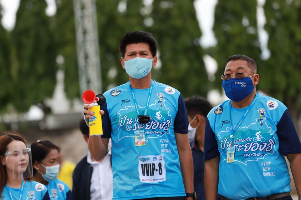 วันที่ 7 สิงหาคม 2563 เวลา 15.00 น. ณ สนามกีฬากลางองค์การบริหารส่วนจังหวัดระยอง ดร.สาธิต ปิตุเตชะ รัฐมนตรีช่วยว่าการกระทรวงสาธารณสุข เป็นประธานเปิดกิจกรรมปั่นปลอดภัย ไประยองฮิ #RAYONGHI #TripNewNormal โดยมีนักปั่นที่สนใจเข้าร่วมกิจกรรมกว่า 1000 คน โดยก่อนการเข้างานได้มีมาตรการจัดแบบ New Normal มีการเว้นระยะห่าง จัดระบบการคัดกรอง 4 ขั้นตอน มีการตรวจวัดอุณหภูมิร่างกายด้วยเครื่อง เทอร์โม สแกน แบบที่เป็นกล้องสำหรับตรวจวัดอุณหภูมิโดยไม่มีการใกล้ชิดกัน มีการพ่นน้ำยาฆ่าเชื้ออุปกรณ์จักรยานทุกคัน และระหว่างเส้นทางการปั่นก็จะมีจุดพักให้นักปั่นได้ดื่มน้ำ รับประทานอาหารว่างและผลไม้ซึ่ง นักปั่นสามารถมาหยิบได้เองเพื่อไม่ให้เกิดความแออัด อีกทั้งมีจุดบริการเจลแอลกอฮอล์ล้างมือติดตั้งไว้ประจำตามจุดทุกจุดเพื่อความปลอดภัย และไปเป็นตามมาตรการสาธารณสุข (สธ.) กำหนด โดยมีเส้นทางการปั่นอยู่ 2 ระยะด้วยกัน ระยะที่ 1 ประมาณ 15 กม. จากสนามกีฬากลางจังหวัดระยอง – เข้าซอยกรอกยายชา - เลี้ยวซ้ายไปคลองตากวน - เลี้ยวซ้ายเข้าหาดสุชาดา - ตรงไปผ่านหาดแสงจันทร์ - แยกนางยักษ์ - เลี้ยวซ้ายเข้าสู่ถนนสุขุมวิท -มุ่งหน้าเข้าสู่สนามกีฬากลางจังหวัดระยอง / ระยะที่ 2 ประมาณ 30 กม. จากสนามกีฬากลางจังหวัดระยอง เข้าซอยกรอกยายชา - เลี้ยวซ้ายไปคลองตากวน - เลี้ยวซ้ายเข้าหาดสุชาดา - ตรงไปผ่านหาดแสงจันทร์ - แยกนางยักษ์ - ตรงไปหาดแหลมเจริญ (จุดพักขบวนเพื่อบริการน้ำดื่ม อาหารว่างแก่ผู้เข้าร่วมกิจกรรม) - เคลื่อนขบวนเดินทางต่อไปผ่านวัดปากน้ำ -เลี้ยวขวาผ่านโรงเรียนระยองวิทยาคม - ผ่านวัดลุ่ม - เลี้ยวซ้ายแยกหอนาฬิกาเข้าสู่ถนนสุขุมวิท - ตรงไปผ่านวัดป่าประดู่ - โรงพยาบาลระยอง - โรงแรมดีวารี - ห้างแหลมทอง - ตรงผ่านแยกพีเอ็มวาย - เลี้ยวซ้ายเข้าสู่สนามกีฬากลางจังหวัดระยอง