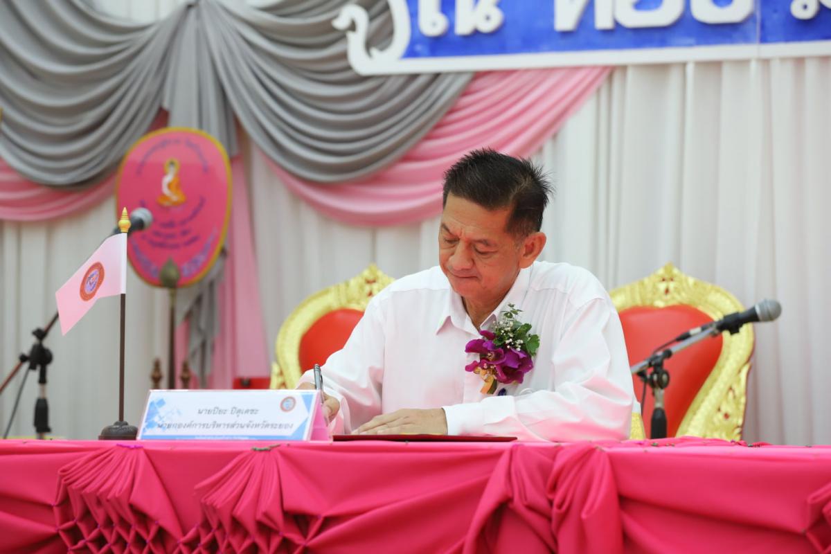 นายปิยะ ปิตุเตชะ นายกองค์การบริหารส่วนจังหวัดระยอง เป็นประธานในพิธีเปิดผ้าแพรคลุมป้าย พร้อมลงนามมอบอาคารหอประชุม “ปิยะวิทยานุสรณ์”กับ ดร.สมศักดิ์ ทองเนียม ผู้อำนวยการสำนักงานเขตพื้นที่การศึกษามัธยมศึกษา เขต 18 โดยมี ดร.สุกิจ โพธิ์ศิริกุล ผู้อำนวยการโรงเรียนบ้านค่าย เป็นผู้กล่าวรายงานฯ นายอรุณ วิชกิจ ผู้เชี่ยวชาญด้านการวางแผนและวิเคราะห์นโยบาย, สมาชิกสภา อบจ.ระยอง เขตอำเภอบ้านค่าย, คณะผู้บริหารสถานศึกษา, หัวหน้าส่วนราชการ, ผู้นำท้องถิ่น, ข้าราชการครูและบุคลากรทางการศึกษา และนักเรียนโรงเรียนบ้านค่าย เข้าร่วมงานกับโดยพร้อมเพรียง ในวันพุธ ที่30 กันยายน 2563 เวลา 08.00 น. ณ อาคารหอประชุม “ปิยะวิทยานุสรณ์”
