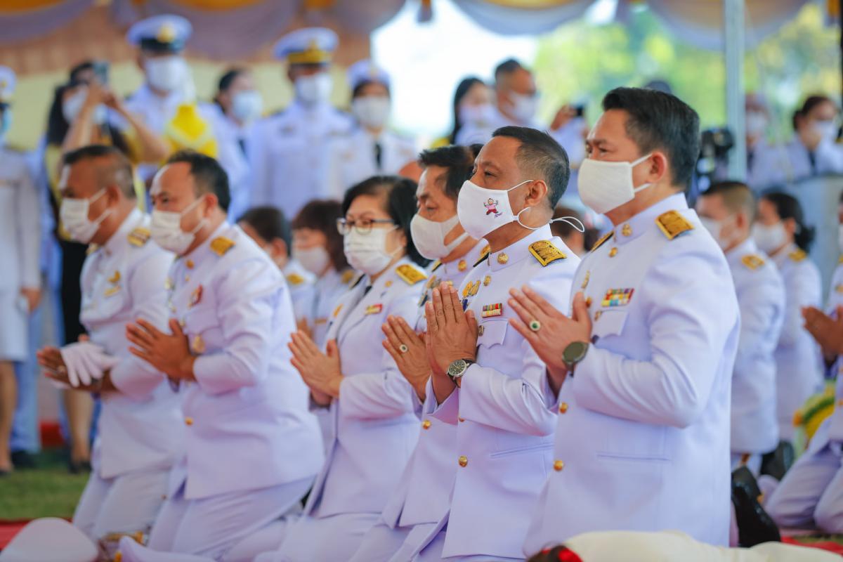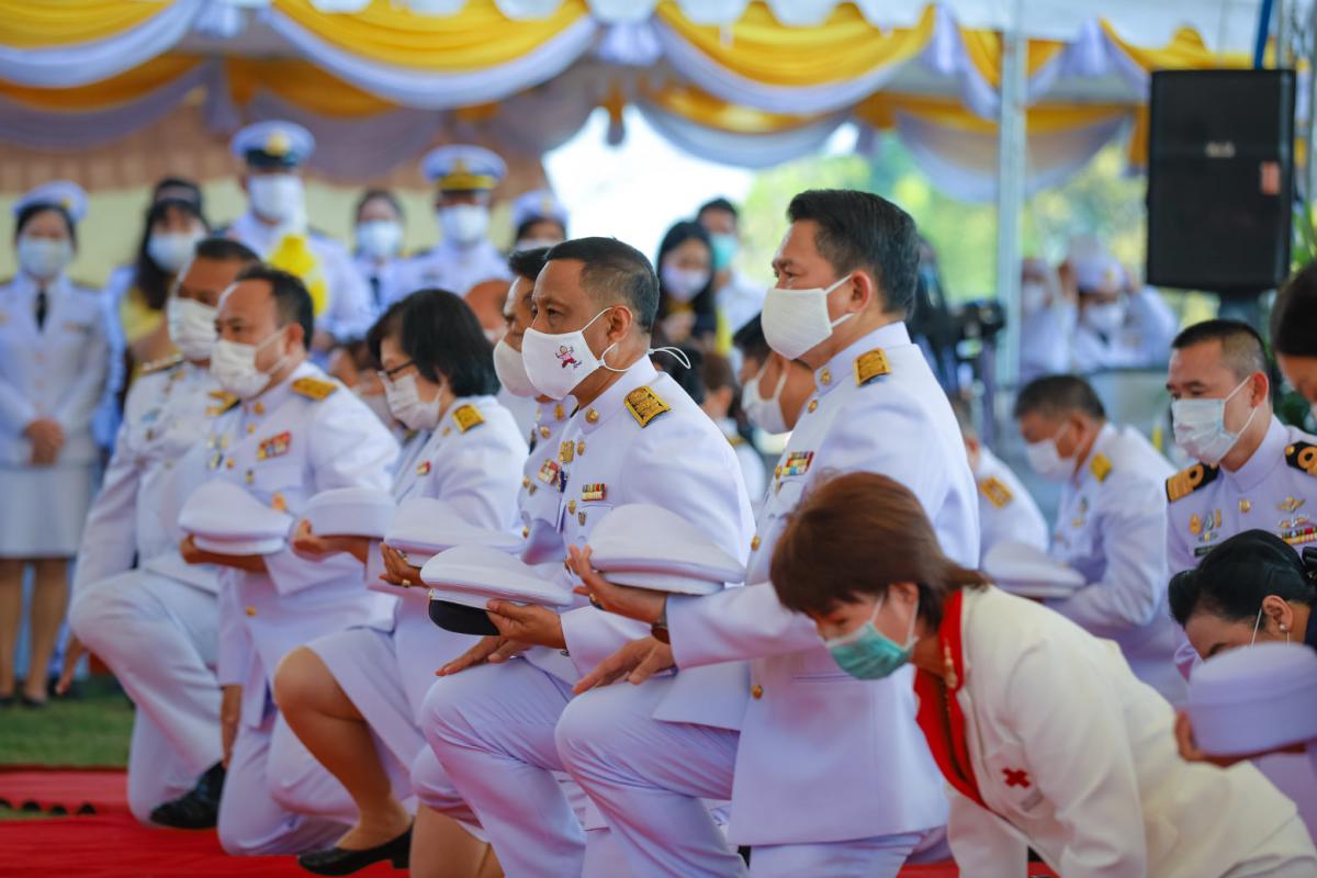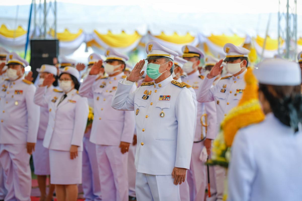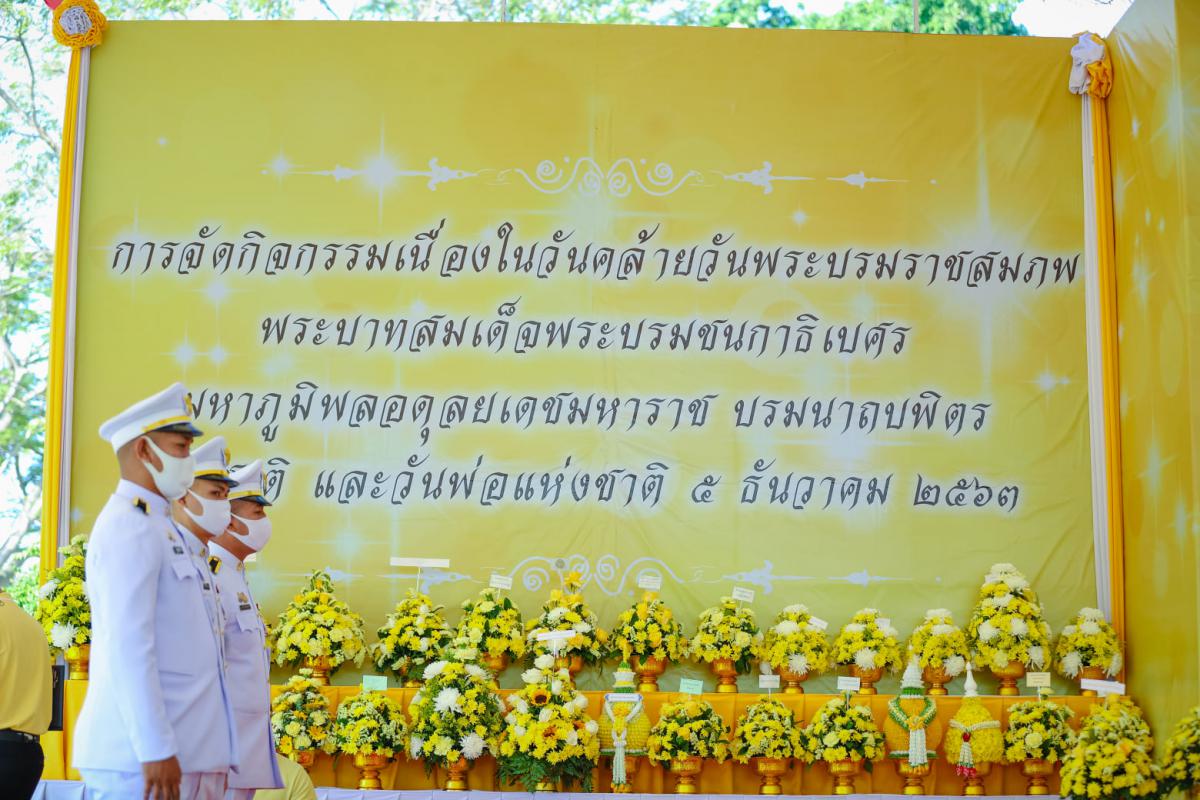 พิธีวางพานพุ่มดอกไม้สดและพิธีถวายบังคม หน้าพระบรมฉายาลักษณ์ เนื่องในวันคล้ายวันพระบรมราชสมภพพระบาทสมเด็จพระบรมชนกาธิเบศร มหาภูมิพลอดุลยเดชมหาราช บรมนาถบพิตรวันชาติ และวันพ่อแห่งชาติ 5 ธันวาคม 2563