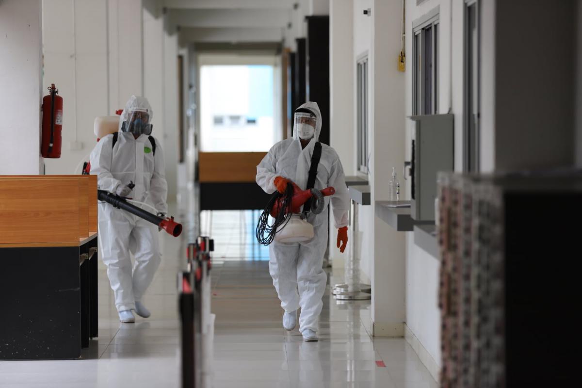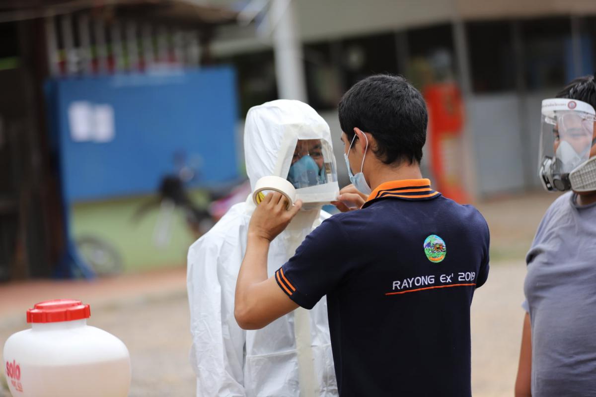 วันที่ 5 มกราคม 2564 องค์การบริหารส่วนจังหวัดระยอง โดยฝ่ายป้องกันและบรรเทาสาธารณภัย กองทรัพยากรธรรมชาติและสิ่งแวดล้อม จัดเจ้าหน้าที่เข้าทำการฉีดพ่นน้ำยาฆ่าเชื้อไวรัส Covid-19 ณ บริเวณ บ้านผู้ติดเชื้อ และผู้ที่รอผลการตรวจ พร้อมกับบริเวณโดยรอบ ซึ่งในวันนี้ได้เข้าฉีดพ่น สถานที่ประกอบไปด้วย
