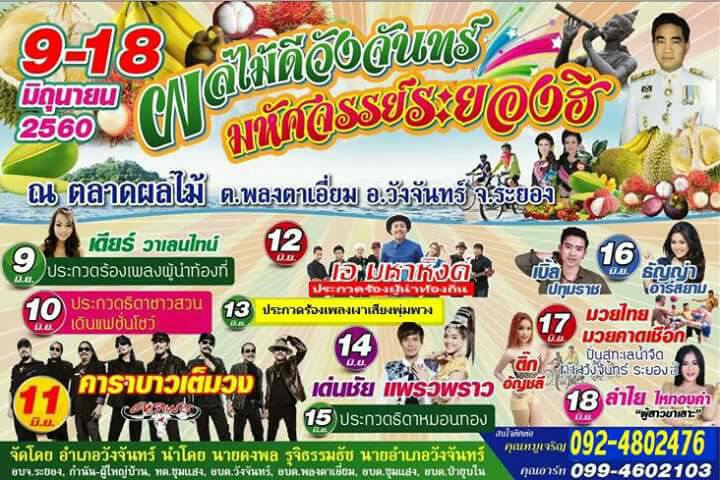 มหัศจรรย์งานผลไม้ และของดีเมืองแกลง” 18-21 พฤษภาคม 2560 ณ สนามที่ว่าการอำเภอแกลง จ.ระยอง