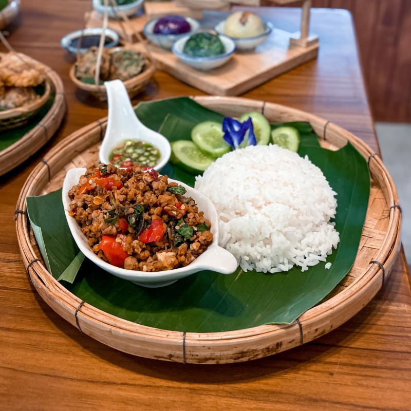 นอกจากกุ้ยช่ายก็มีขนมลอดช่อง ทับทิมกรอบ ร้านทำเองอีกแล้วววว กลมกล่อมหวานน้อยหอมกะทิสุดๆ ตอนนี้มีเมนูใหม่ 'ข้าวกะเพราหมูสับ'