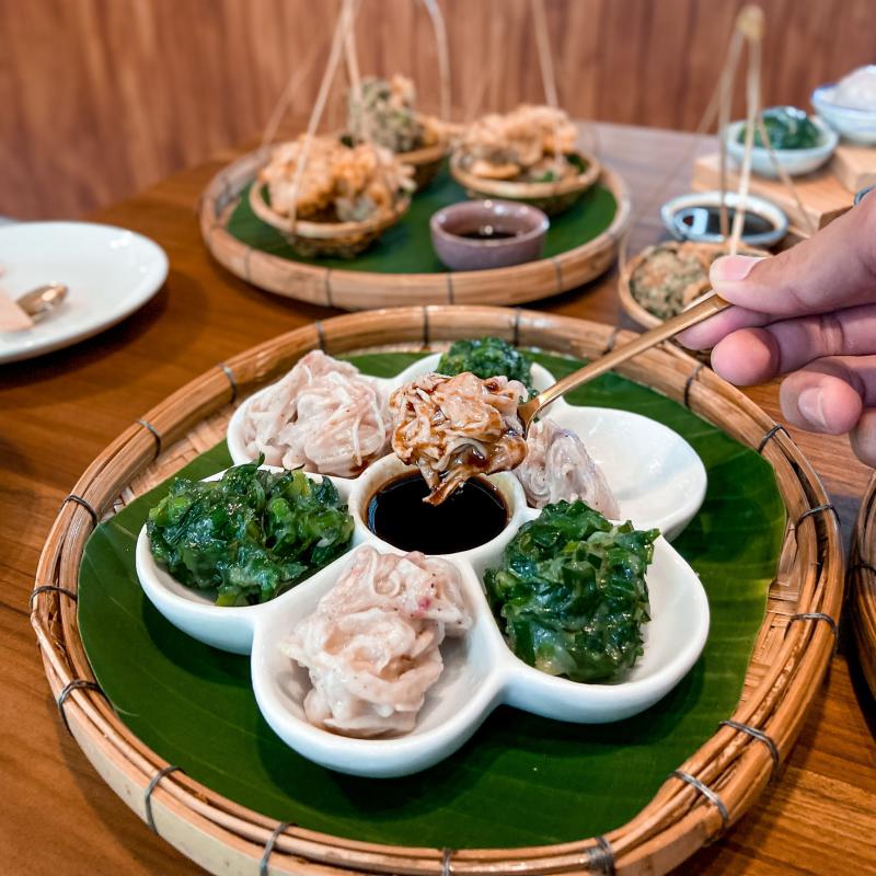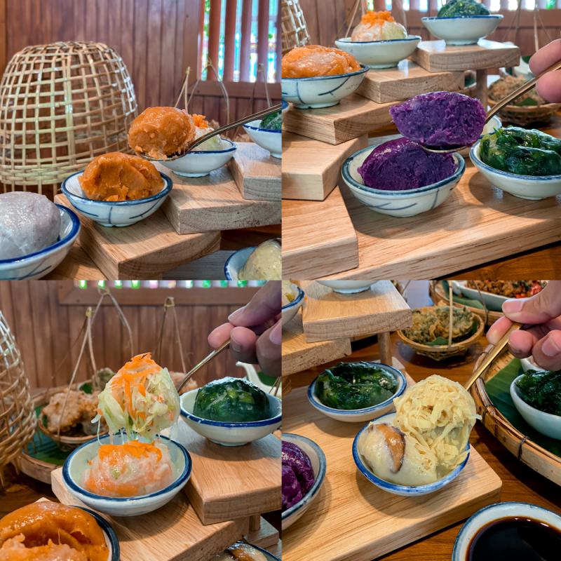 ร้านนี้เน้นไส้ไม่เน้นแป้ง มีกุ้ยช่ายให้เลือก 3 แบบหลักๆ คือ กุ้ยช่ายลูกกลม แป้งบางมาก เลือกได้ 6 ไส้ กุ้ยช่ายลูกหยอด นึ่งได้หนึบหนับสุดๆ