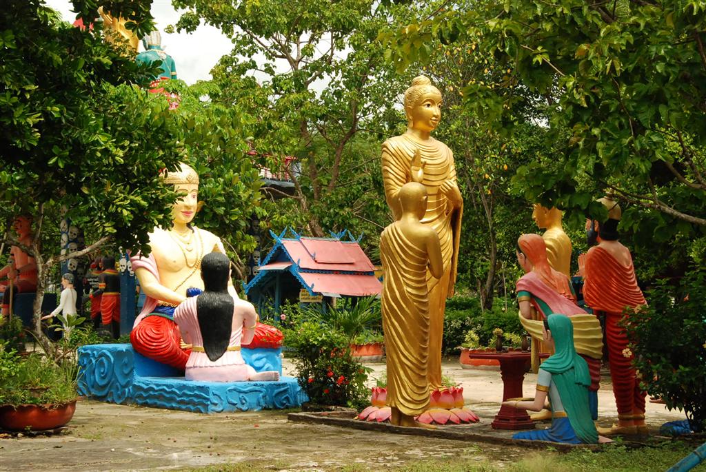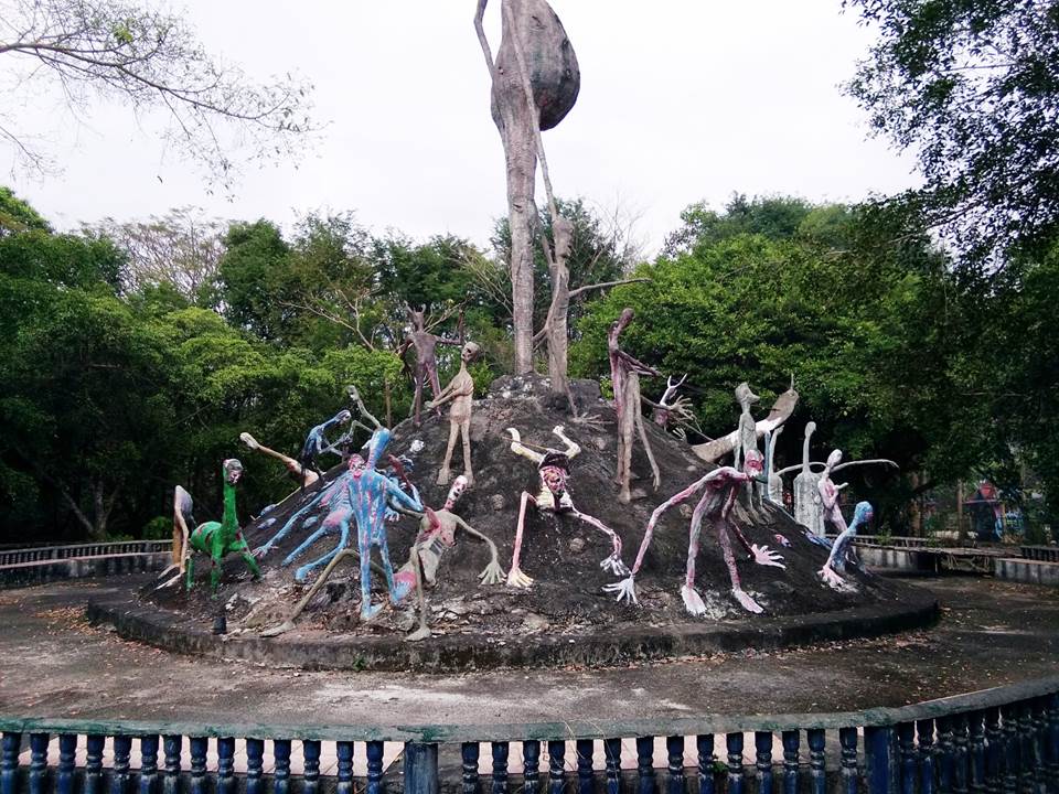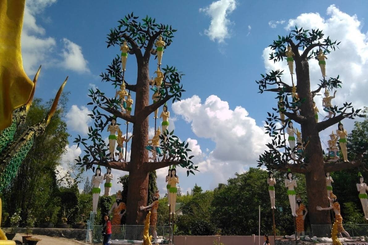 เมื่อเดินทางมาถึงหน้าวัดก็ต้องตกตะลึงกับความงามของรูปปั้นต่าง ๆ ต้องขอบอกก่อนนะครับว่า มีรูปปั้นเกี่ยวกับพุทธศาสนา