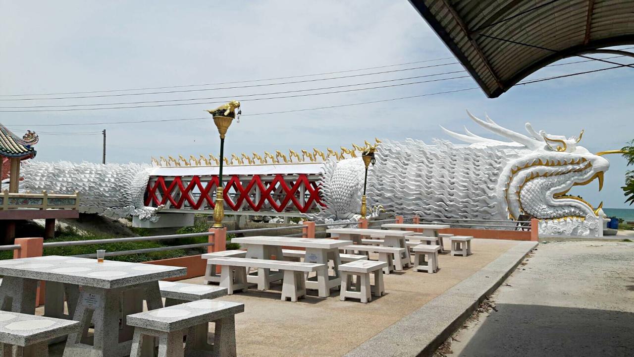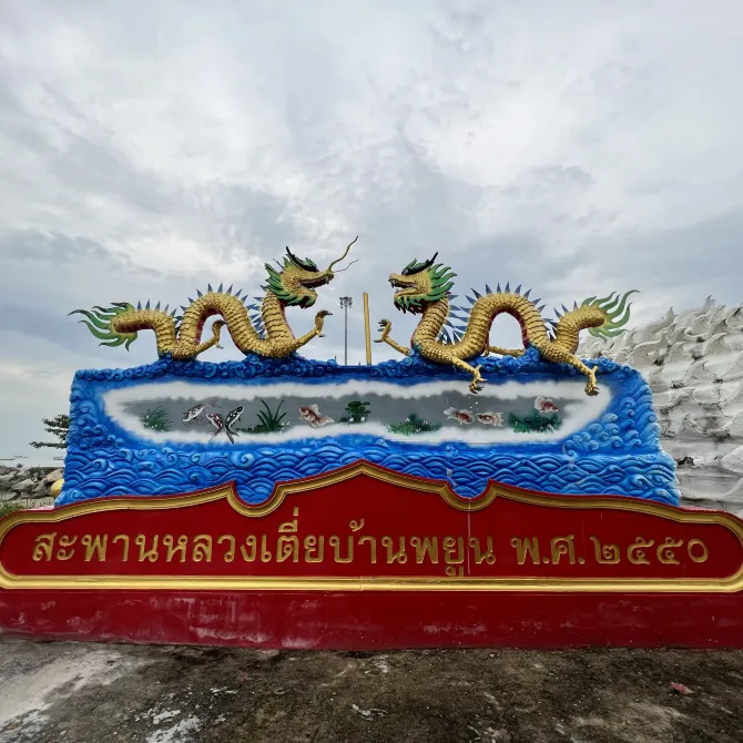 อำเภอบ้านฉางอีกแห่งหนึ่งที่ติดกับหาดพยูน อย่าง “ศาลเจ้าหลวงเตี่ยบ้านพยูน” ไฮไลต์ของที่นี่อยู่ที่สะพานมังกรสุดตระการตา