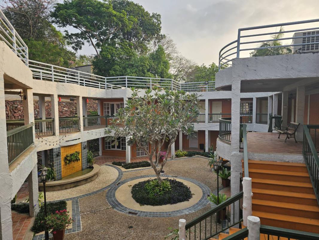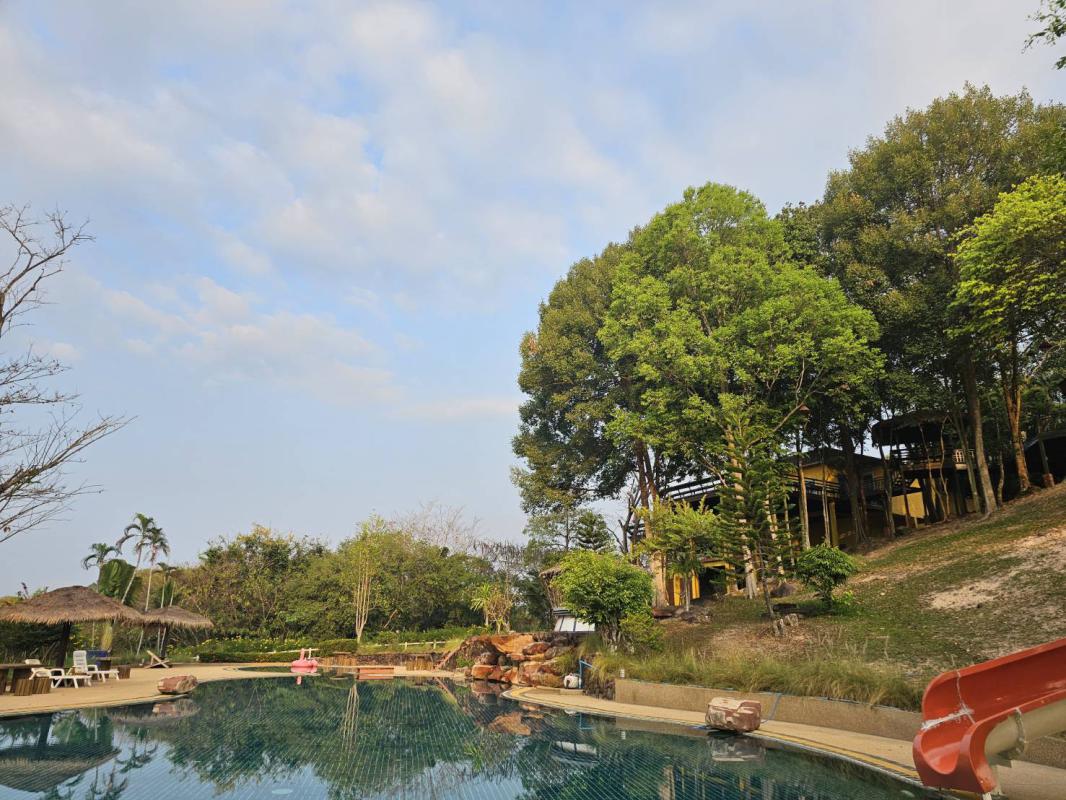 พร้อมมีสระว่ายน้ำอยู่ท่ามกลางธรรมชาติ รายล้อมไปด้วยต้นไม้นานาพันธุ์