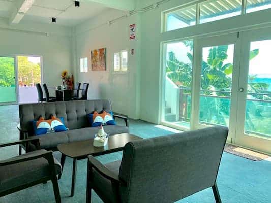 ก็สามารถเดินข้ามจากที่พักไปนั่งชิวๆ ที่ริมทะเลได้เลย ฝั่งชายหาดก็จะมีของขายเยอะมาก จะนั่งร้านหรือเอาเก้าอี้สนาม