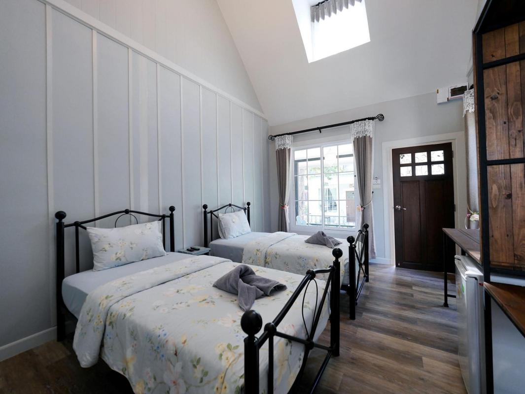 ตู้เย็น กาน้ำร้อน และยังมีบริการอาหารเช้าแบบบุฟเฟต์ให้กินกันแบบจุกๆ มีลานระเบียงสวยๆ ไว้ให้เก็บภาพ