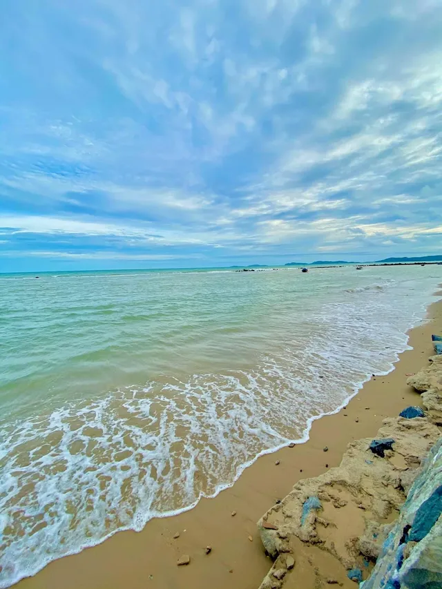 เปลือกไข่ ส่วนน้ำทะเลสีเขียวใส นักท่องเที่ยวสามารถเล่นน้ำทะเล พายแคนนูได้เลยค่ะ บรรยากาศ