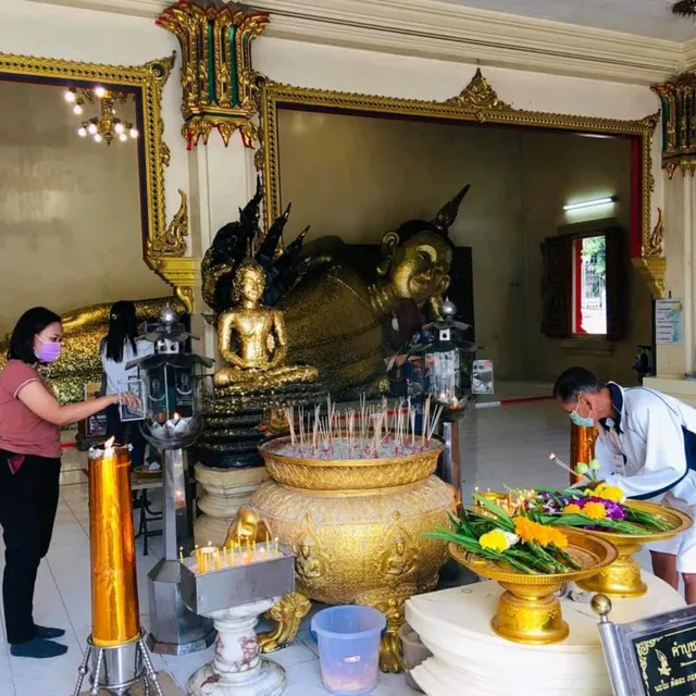 แวะสักการะพระพุทธรูปปางปาลิไลยก์ประทับอยู่ในท่านั่งหอยพระบาทองค์เก่าแก่ที่อยู่คู่กับวัดเพื่อเสริมสิริมงคล