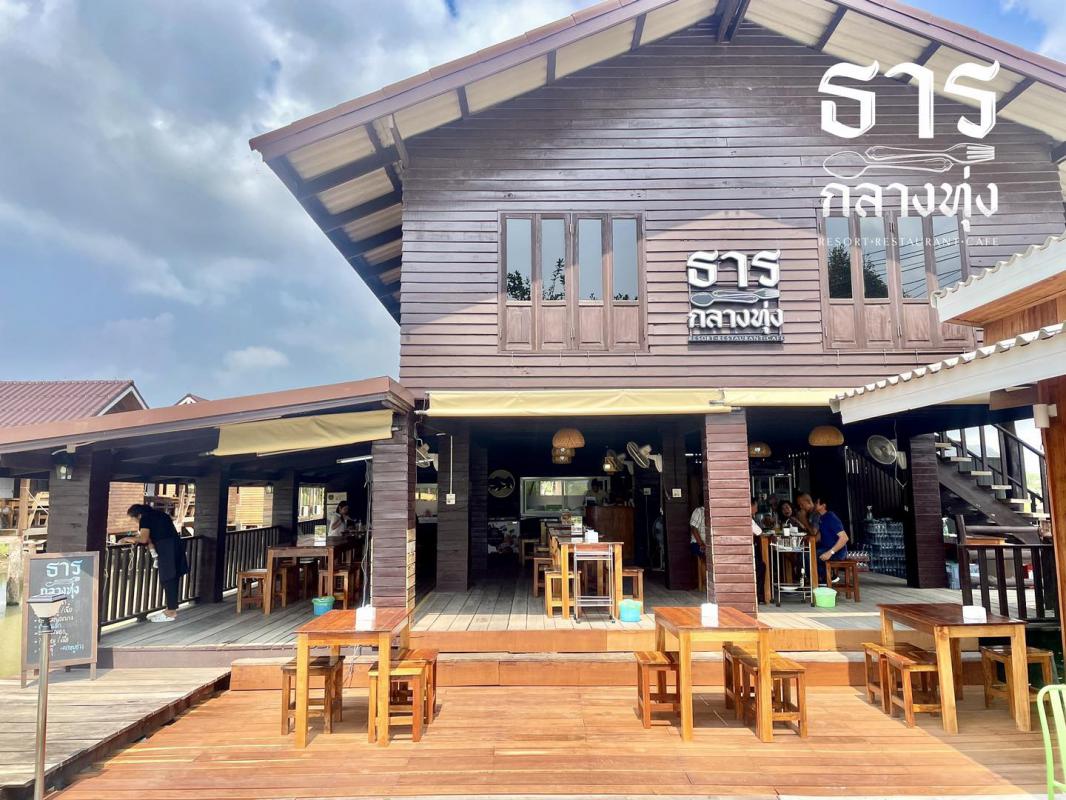 บรรยากาศดี สวย สะอาด ร้านโล่งโปร่งสบาย ท่ามกลางธรรมชาติ ริมน้ำท้องทุ่ง