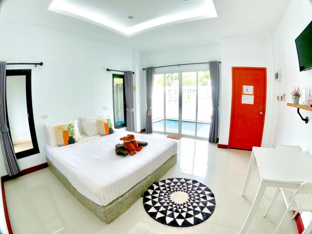 จอดรถข้างห้องพักได้เลย บริเวณห้องพักก็มีพื้นที่กว้างขวาง หากพาลูกๆ มาก็สามารถวิ่งเล่น ว่ายน้ำ หรือจะ
