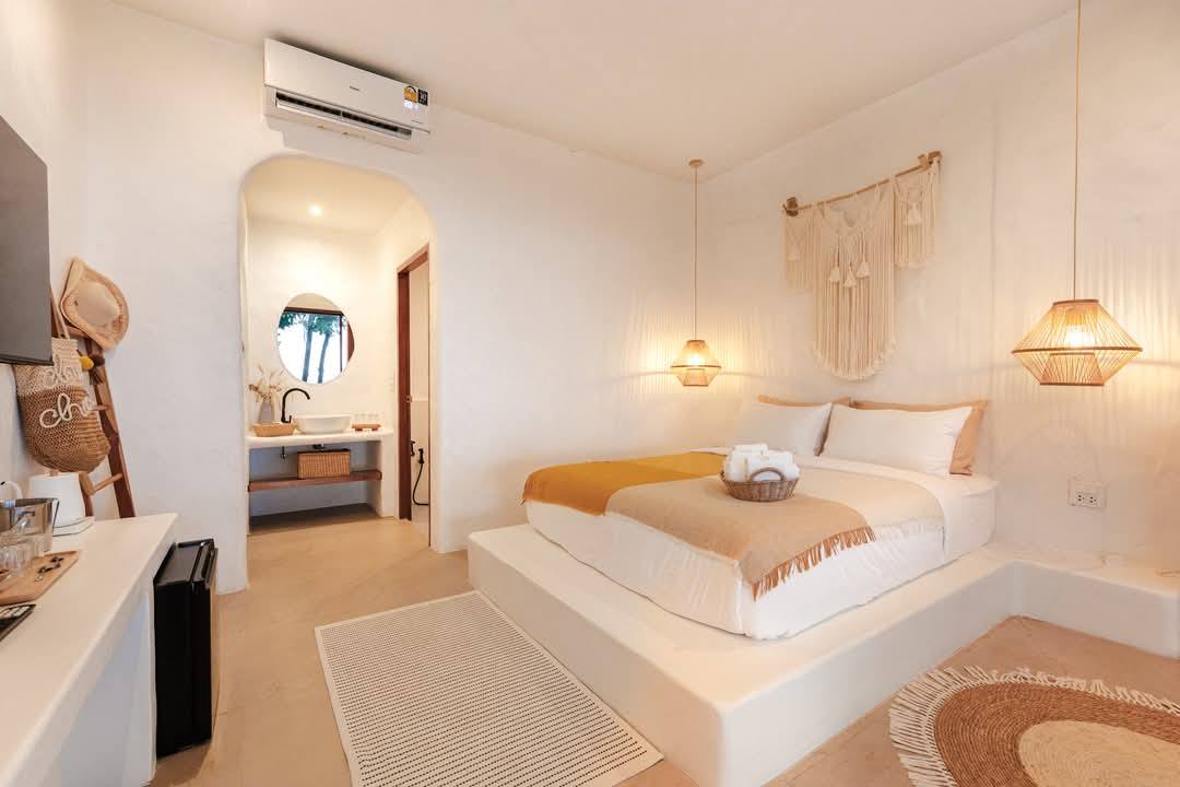 ห้องพักกว้างขวาง เตียงนุ่มนอนสบายเว่อร์ ห้องสะอาด มีอุปกรณ์อำนวยความสะดวกครบครัน แถมยังมีมุมถ่ายรูปเก๋ๆ เพียบ
