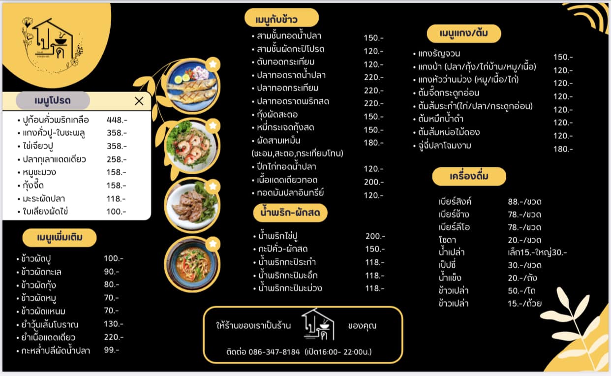 ที่มา : https://www.facebook.com/ p/ร้านอาหารโปรด-61558440637773/?locale=th_TH