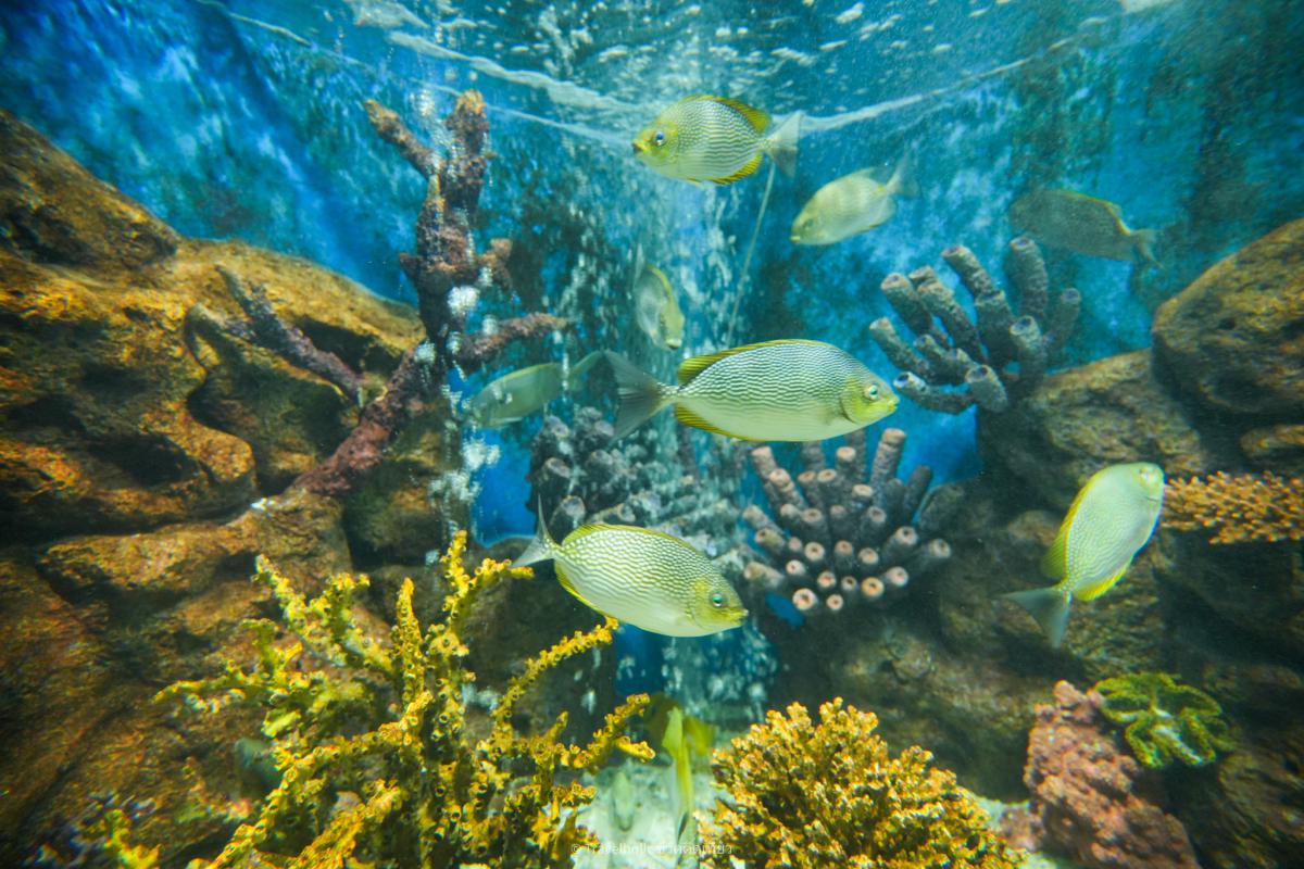 หรือ ปลิงทะเลต่างๆ บ่อจัดแสดงพันธุ์ปลาผิวน้ำ หรือ บ่อกลางแจ้งสำหรับแสดงระบบนิเวศน์ใต้ท้องทะเล