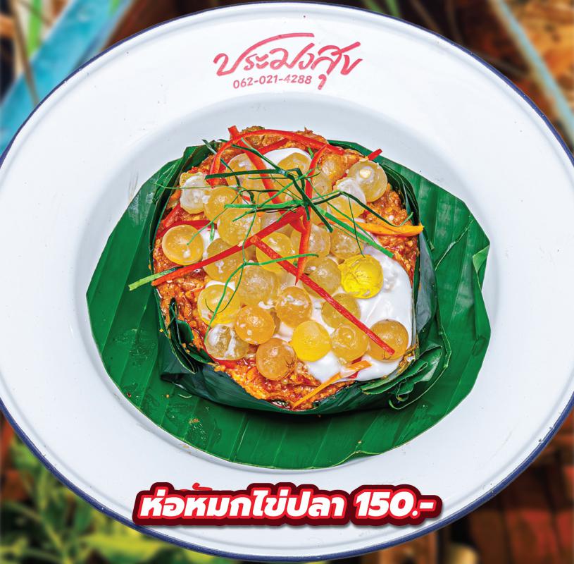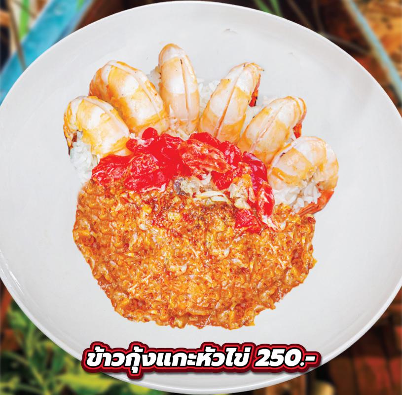 ข้าวขยำปู ข้าวกระเพรามหาสมุทร ปลาหมึกผัดน้ำดำ เอ็นหอยจอบซาชิมิ แกงส้มชะอมกุ้ง+ไข่ปลา