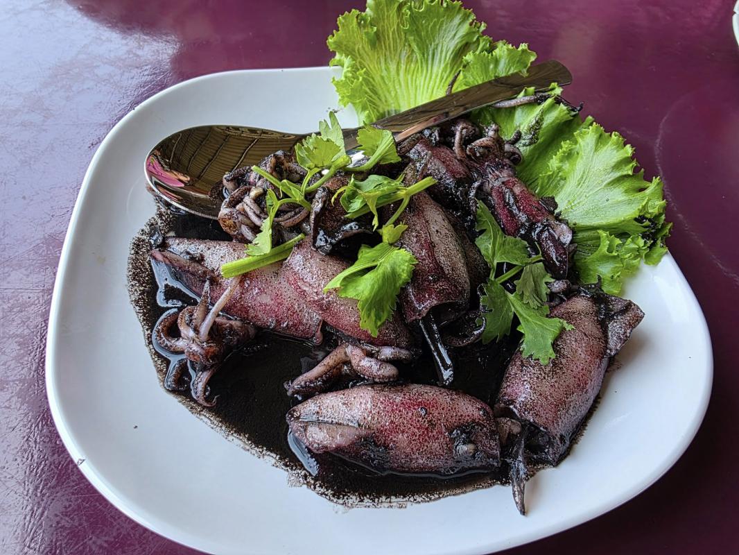 หมึกกะตอยต้มน้ำดำ และหมึกเฟี๊ยวฟ้าวที่เคี้ยวมันส์จนหยุดไม่ได้ บรรยากาศก็ดีมาก อยู่ติดริมน้ำ