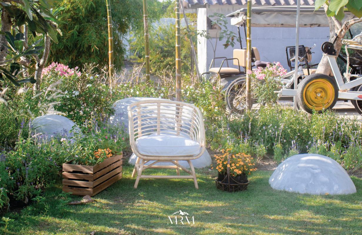 มีอ่างแช่ตัว ด้านนอกมีพื้นที่สนามหญ้าไว้ให้ทำกิจกรรมร่วมกัน บรรยากาศดีมากๆ แถมยังจัดโต๊ะ