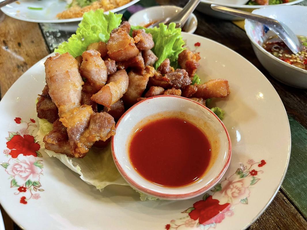 • ปีกไก่ทอดน้ำปลา • หมูแดดเดียวน้ำปลา • ปลาจาระเม็ดทอด