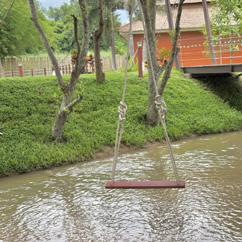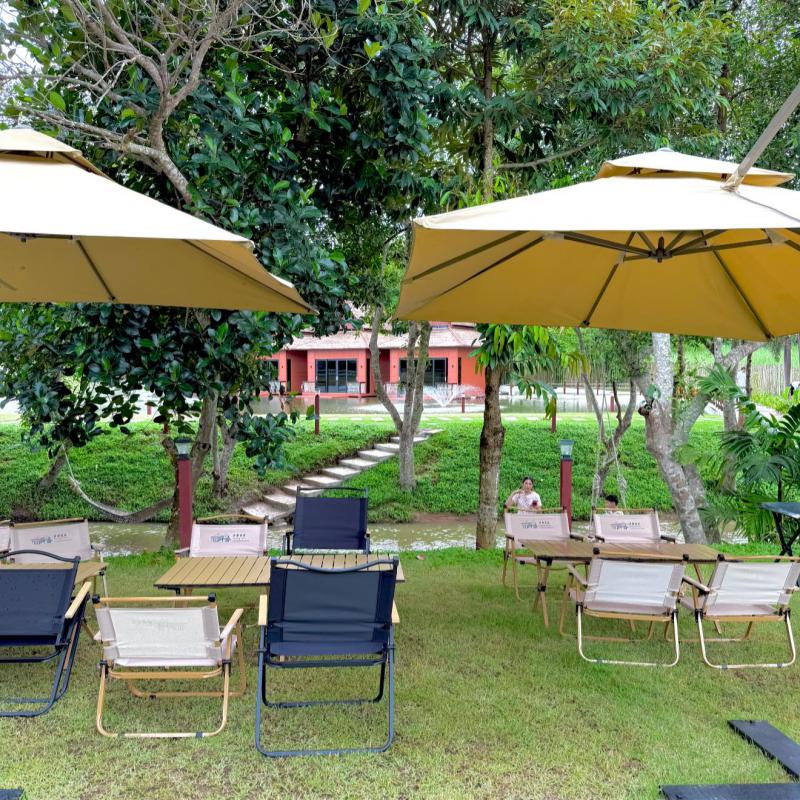 เป็นบ้านเรือนไทยริมน้ำ พื้นที่สีเขียว ร่มรื่น สบาย ๆ สามารถสั่งเครื่องดื่มแล้วไปนั่งชิลริมน้ำกันได้นะ