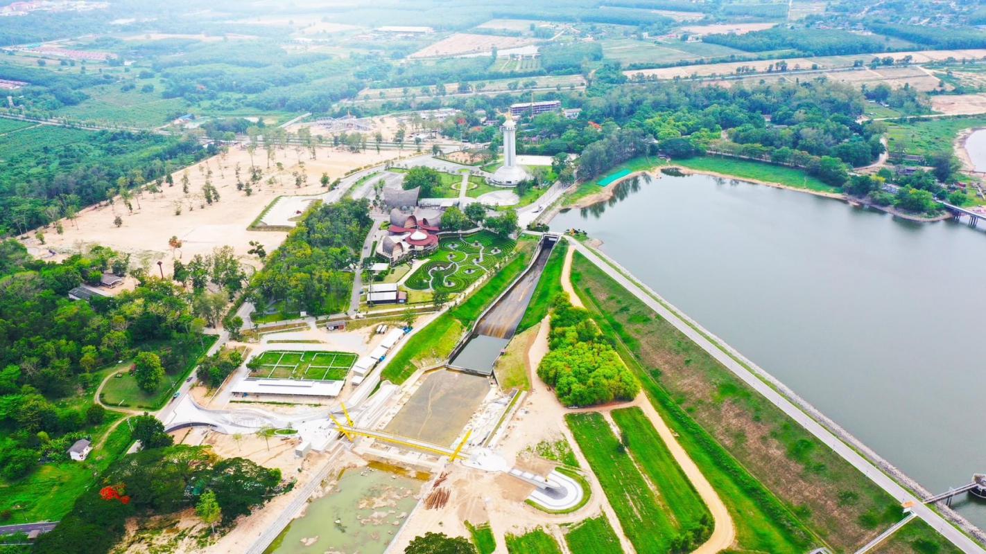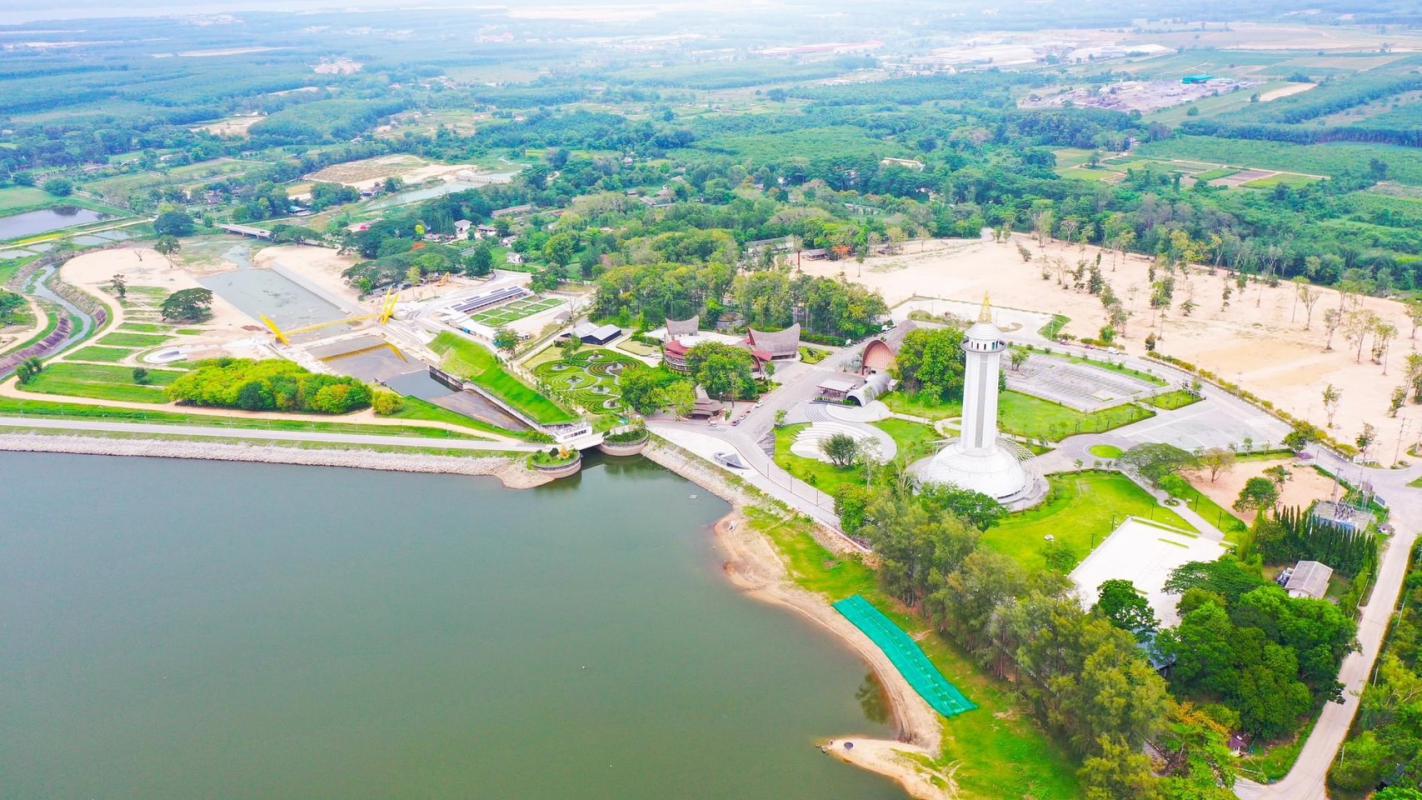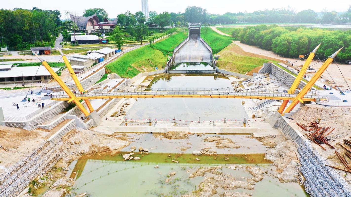 ระหว่างฝั่งอ่างเก็บน้ำกับสวนสีเขียว นอกจากนี้ยังมีลานกิจกรรมให้ปั่นจักรยาน เส้นทางเดินเล่นชมวิว และร้าน