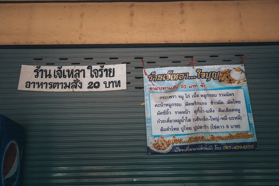 ร้านอาหารตามสั่งธรรมดา ที่ต้องบริการตัวเอง "จะให้ฉันบริการทุกคนก็ไม่ไหว เพราะฉันทำคนเดียว ฉันขายเท่านี้ คุณต้องการบริการด้วยเหรอ" ยายเหลากล่าวอีกรอบ ทางร้านมีอาหารตามสั่งทุกอย่างที่ตามป้ายบอก ใครอยากกินนอกเหนือจากป้าย แนะนำให้ดูอารมณ์ของแม่ค้าก่อน ดูคิวก่อนว่ายาวไหม หากช่วงเวลาเหมาะสมคุณก็จะได้กินสิ่งที่อยากกิน