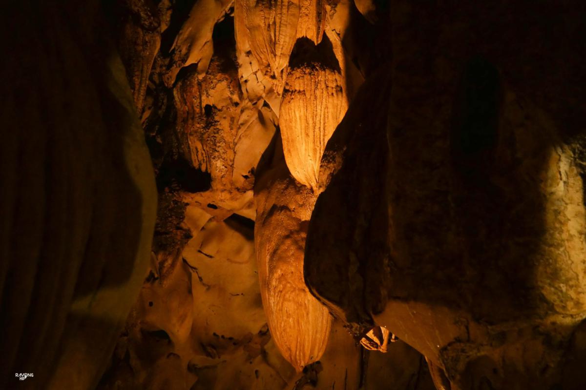 จากการสำรวจสัมผัสได้ถึงบรรยากาศที่เงียบสงบ มีความสดชื่น มันจะเย็นๆ ชื้นๆ หน่อย ด้านหน้าจะมีพระพุทธรูปขนาดใหญ่ ส่วนด้านข้างจะมีถ้ำเล็กๆ ที่ประดิษฐานพระพุทธรูปอีกหลายองค์ให้ประชาชนได้สักการะขอพร ถัดมาจะเป็นอุโมงค์บาดาลที่เชื่อมต่อไปยังอีกฝั่งซึ่งเราต้องนั่งเรือเข้าไป งานนี้ถ้าพายเองคงล่มแน่ๆ โชคดีที่วันนี้มีน้องเป้งอาสาพาเข้าไปชมความสวยงามด้านใน โดยน้องเป้งไม่ได้นั่งพายเรืออย่างที่คิดไว้ แต่ใช้วิธีการไสหรือดันเรือเข้าไป เพราะน้ำไม่ลึกมากแค่ระดับอกน้องเป้งเอ๊ง! น้ำนี่อย่างเย็นเล่นเอาคนไสเรือเราตัวสั่นเลยทีเดียว ระหว่างทางที่เข้าไปในอุโมงค์จะเห็นหินธรรมชาติที่ถูกกัดกร่อนมีรูพรุนเล็กใหญ่สลับกันไป เนื่องจากระดับน้ำสูงไม่มากแม้…ฉันกลัวที่แคบ ก็สามารถลุยต่อได้สบาย แต่บางช่วงต้องยอมก้มหัวให้หินนิดนึง ไม่งั้นเดี๋ยวโป๊กขึ้นมาละแย่เลย มีคนเล่าว่าอุโมงค์นี้พระ เณร เด็กวัดและชาวบ้านต้องช่วยกันขุดและขนดินออก กว่าจะทะลุถึงถ้ำอีกฝั่งหนึ่งได้ต้องใช้ความพยายามอย่างมากมาย ล่องเรืออยู่ไม่นานน่าจะระยะทางเกือบ 300 เมตร ก็มาถึงฝั่งด้านใน ซึ่งมีลักษณ์เป็นหุบผา มีลานกว้างมองเห็นต้นไม้และท้องฟ้า ซึ่งมีการปรับพื้นที่ให้ดูสะอาด กลมกลืนกับธรรมชาติ ด้านในจะมีถ้ำเล็กๆ ที่ใช้สำหรับใช้ปฏิบัติธรรม รู้สึกว้าว! ทันทีเมื่อได้มายืนมองถ้ำ เพราะเต็มไปด้วยหินง้อยหินยอก เอ้ย! หินงอกหินย้อย และอากาศไม่อับชื้นมาก มีค้างคาวบินมาทักทายนิดหน่อยนับได้ 4 – 5 ตัว ในถ้ำทางวัดจะติดไฟไว้ระหว่างทางซึ่งเราสามารถมองด้วยตาเปล่าโดยไม่ต้องพึ่งไฟฉาย ที่นี่อากาศดีเย็นสบาย โดยเฉพาะหุบฝาที่มีความเขียวขจีของต้นไม้สลับกับหินที่ดูสบายตา กลับมาที่ด้านนอกยังมีลิงและบ่อเลี้ยงปลาให้ได้ชมกันอีกด้วย